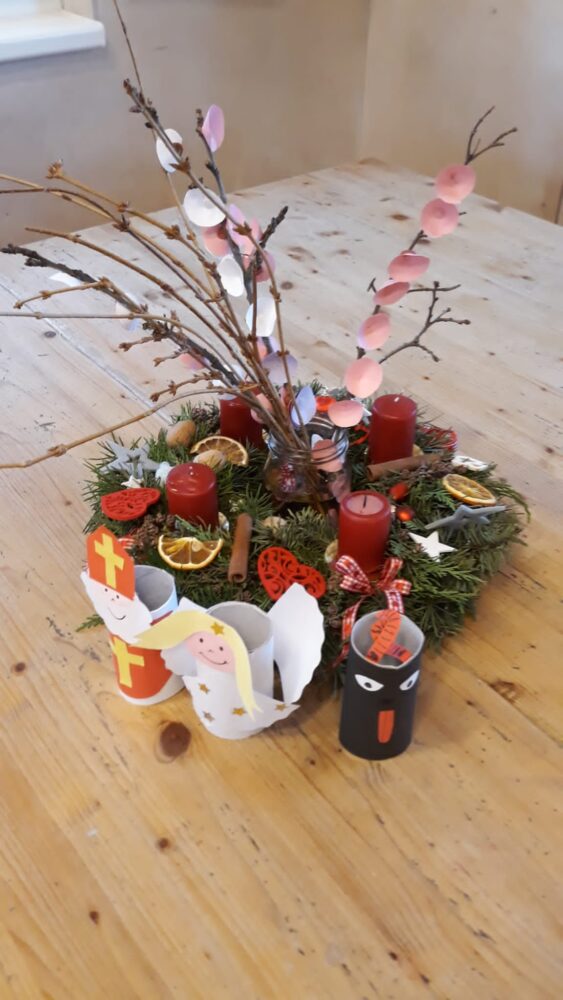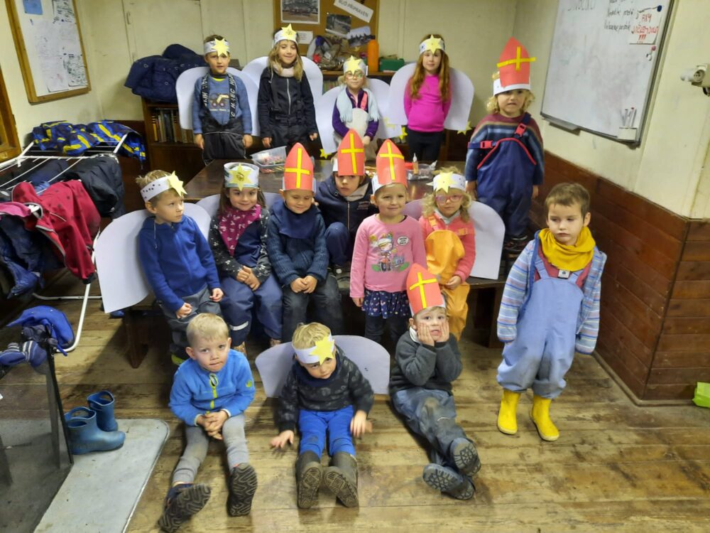 Ve středu jsme měli ve školce už mikulášskou nadílku, které předcházela výroba andělských křídel a čelenek s hvězdou nebo mikulášská čepice. Na fotce sami posuďte, jaká se sešla parta „svatých“, kterým to náramně slušelo. Pak přišla na řadu nadílka, kterou si děti rozhodně zasloužily, říkal Mikuláš 😊 Na nějakou zdravou dobrotu přišel čas po obědě, se kterou si pak společně a v klidu prohlížely knížky. Polední čas byl opět vyplněn čtením, tentokrát si děti vybraly nejen mikulášský příběh, ale už i jeden vánoční s krtečkem. Pak už jsme vyráběli papírové řetězy, abychom měli připravenou výzdobu na stromeček. A závěr dne patřil našim zpívánkám, kde zazněly nejen vánoční koledy, ale i oblíbené písničky z minulých zpívání. Děti se potřebovaly pohybovat, a tak se dnes spíše zpívalo za běhu. Ale i tak to byl příjemně strávený čas.