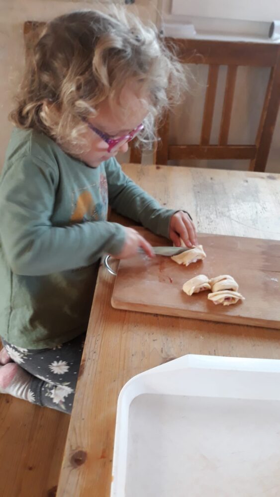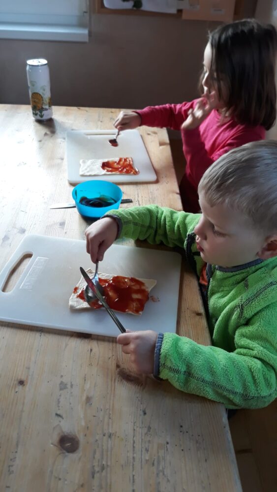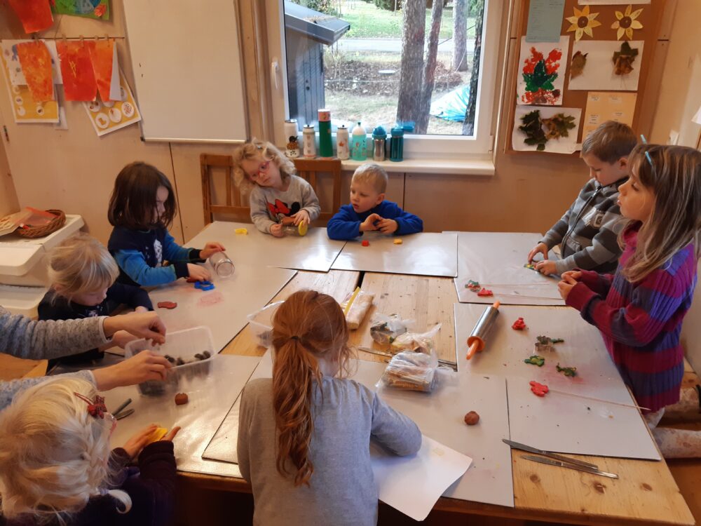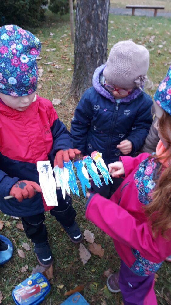 V úterý jsme si připomněli druhého nejznámějšího ptáka, který na podzim odlétá do Afriky – vlaštovku obecnou. Po svačině si jí děti vyrobily z papíru a nalepily na kolíček. Potom jsme hrou vlaštovky v jejich odletu napodobili. Všechny vlaštovky děti pomocí kolíčku připevnily na větývku a pak se rozletěly na dlouhou a náročnou cestu, kterým pro nás byl lesík se všemi svými přírodními překážkami, až jsme nakonec doletěli k řece (silnice), která byla pro vlaštovky posledním místem k přeletu do Afriky. V našem případě se jím stalo pole plného „teplého sluníčka“ 😊. Tady si děti ještě se svými vlaštovkami zadováděly házením do vzduchu – kdo nejvýš. Po obědě se děti pustily do samostatné přípravy svačinky, kterou byly šneci z kynutého těsta, plněné kečupem, sýrem a šunkou. V mezičase, než se šneci upekly, si děti tentokrát poslechly příběh Já Baryk a moje vlaštovka a pak už si zase pochutnávaly na svačině.