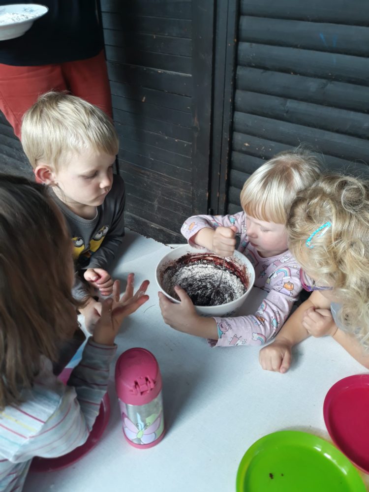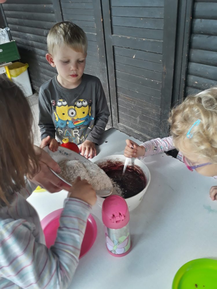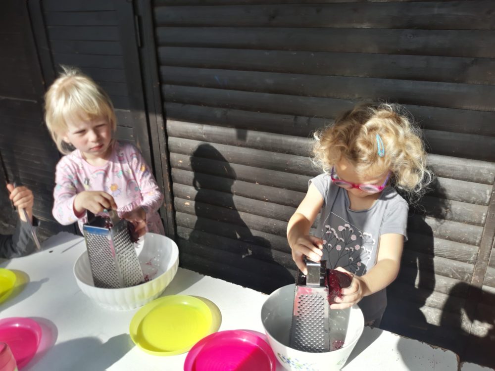 I úterní den jsme byli s pohádkou O veliké řepě. U horozeleckých stěn se děti opět rozdělily do dvou skupinek, ve kterých měly kouzelný pytlík s obrázky, které si postupně losovaly a plnily různé úkoly. Pohádku si pak děti zahrály s loutkami nebo jí opět, jako včera, samy zahrály. Řepné dny jsme zakončili odpolední samostatnou přípravou svačiny, kterou byly muffiny s červenou řepou. Mňam, to jsme si ale zdravě pochutnali😊.