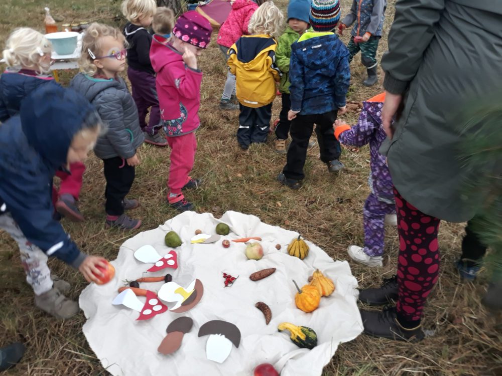 Pohádka O veliké řepě byla dalším pokračováním naším košíkem podzimního tajemství. Začali jsme pohybovou hrou Na řepu, pokračovali jsme v četbě pohádky s následnými otázkami a odpověďmi k textu, a nakonec si děti pohádku samy zahrály. Dopolední čas si děti užívaly ještě při hře Na slepou bábu, válením sudů a na dětském hřišti na prolézačkách a pískovišti. Po obědě jsme si pohádku ještě jednou připomněli četbou z dalších knížek a tvořením dějové posloupnosti. A poslední puzzle pro dnešní den byla ke svačině pomazánka z červené řepy😊.