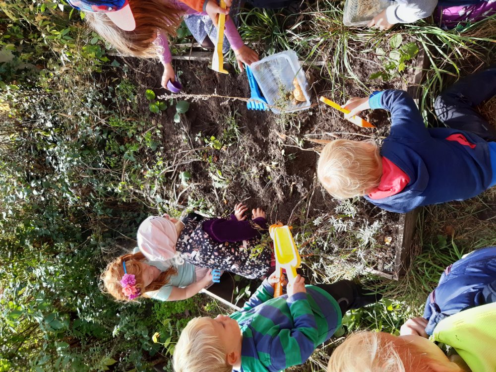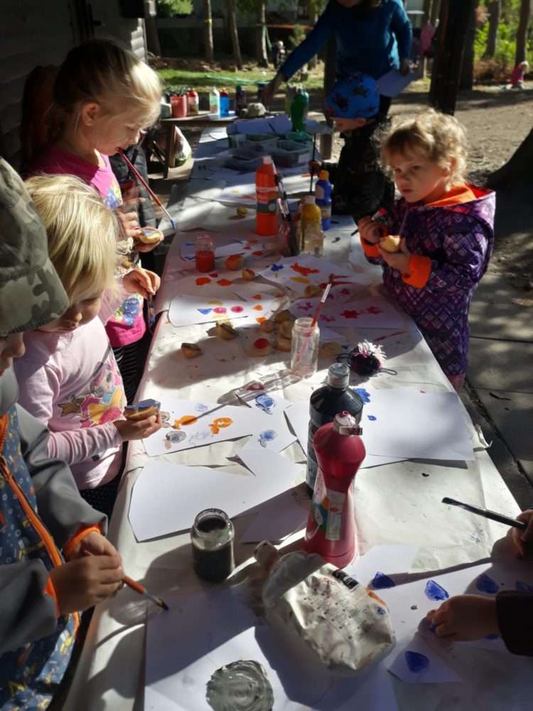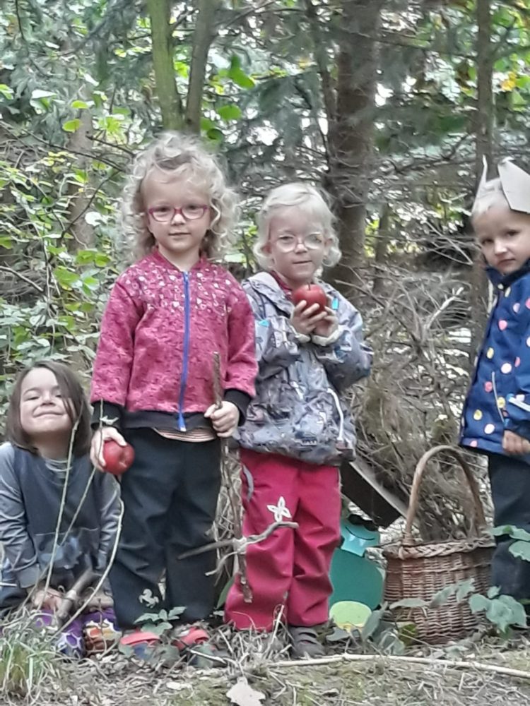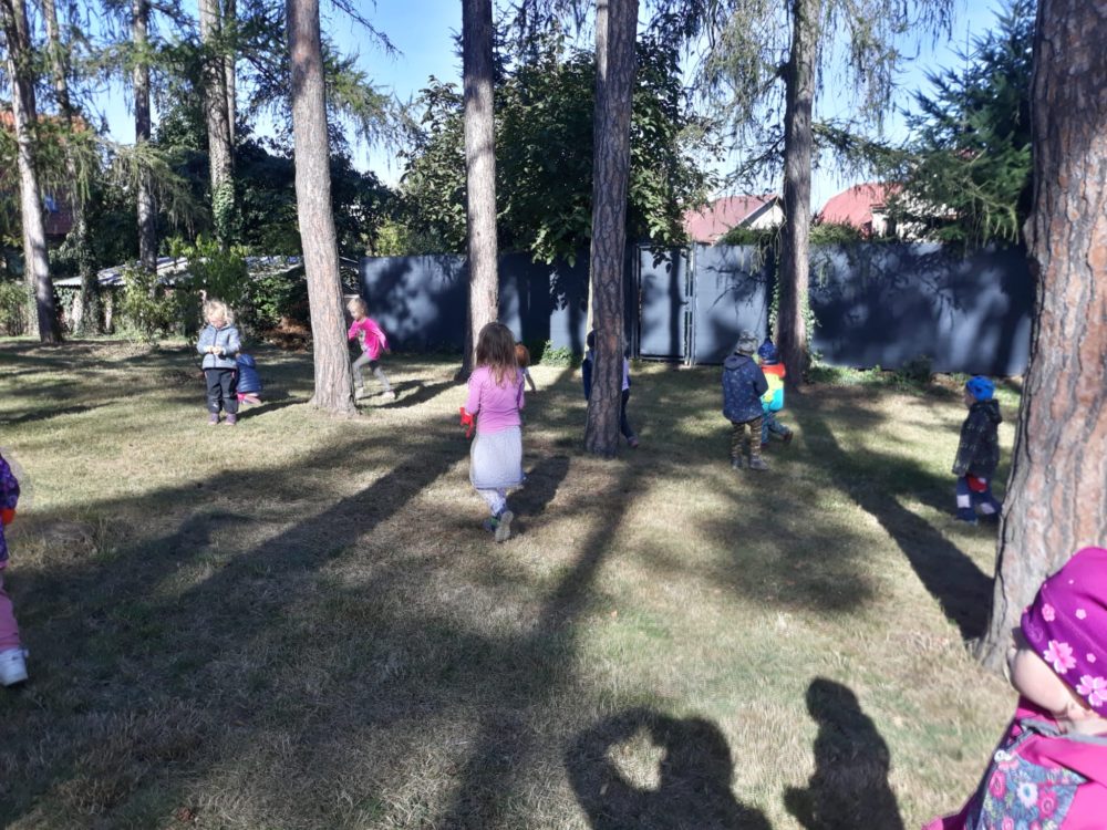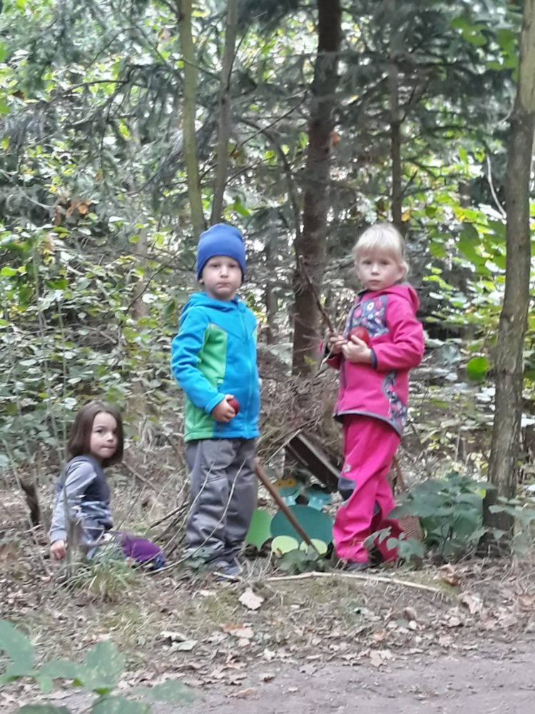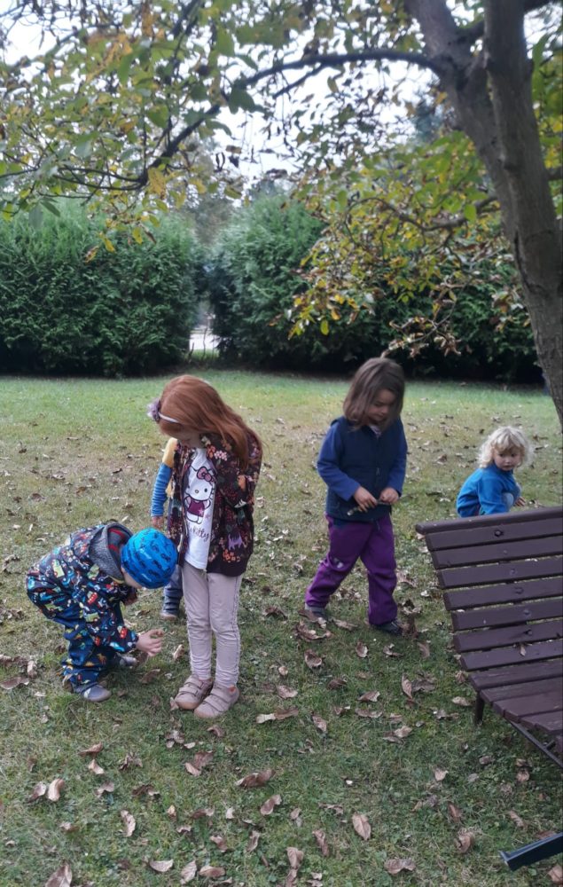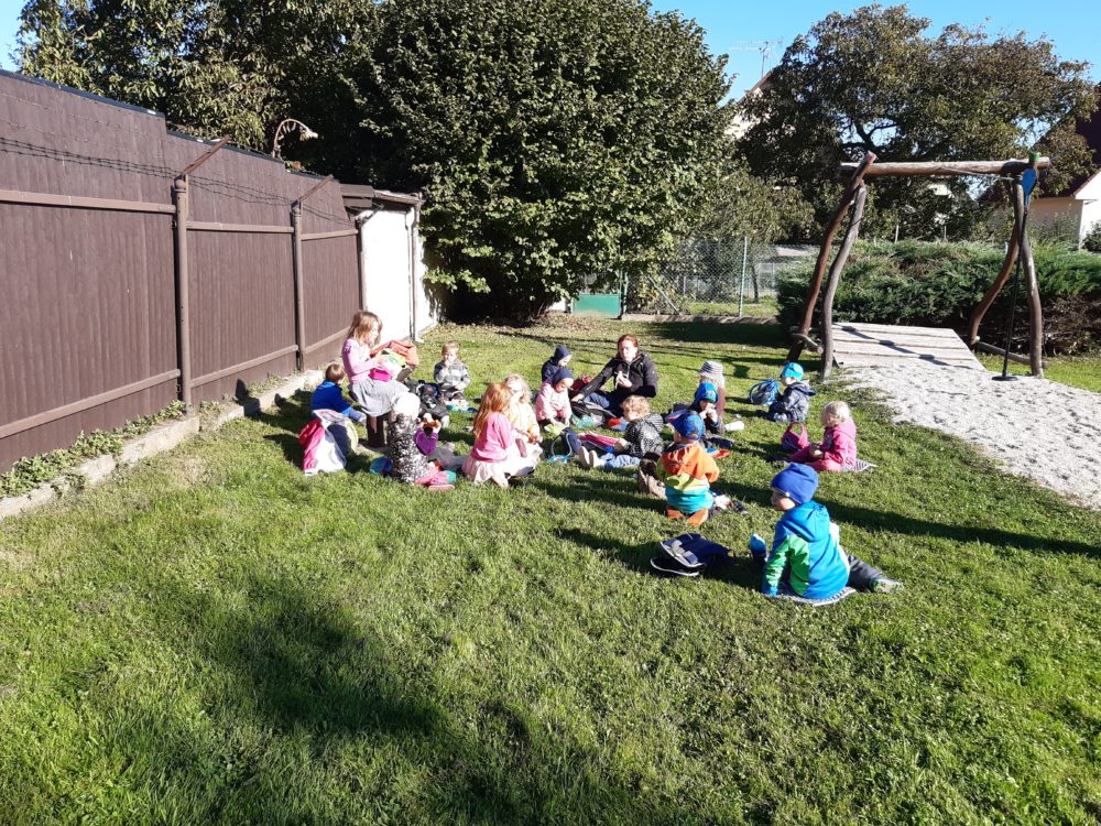 Páteční dopoledne jsme si užili s pohádkou Princeznička na bále. V parku po svačině jsme si zahráli loutkové divadlo, potom děti coby Honzíkové z pohádky šly hledat/kopat brambory pro krále, a nakonec při návratu do zahrady zdobily bramborovými razítky papírové šaty pro princeznu. Závěr dne patřil mini školičce pro naše předškoláky a volným hrám. Byl to jeden z krásných a slunečných dnů, které nás v tomto podzimním čase provází.