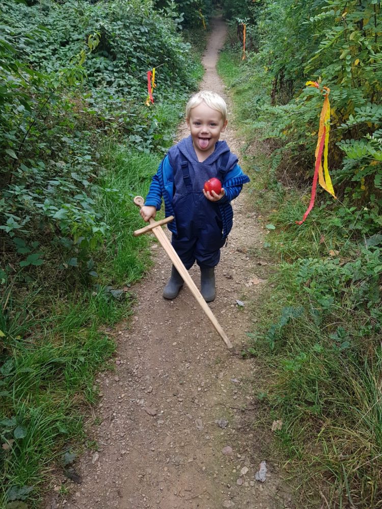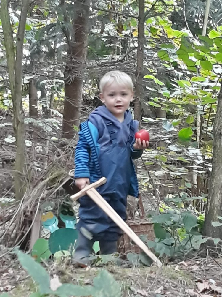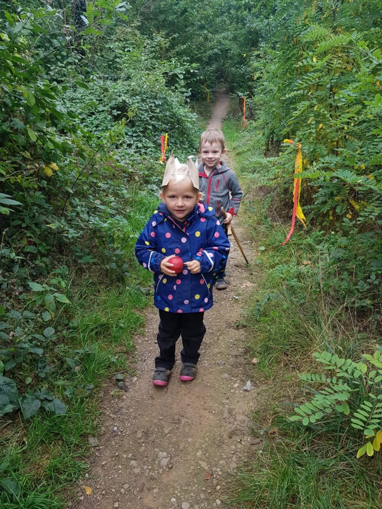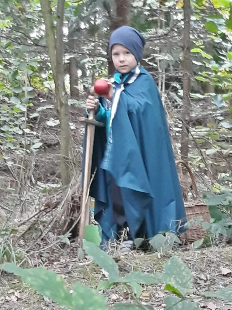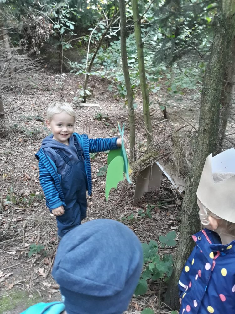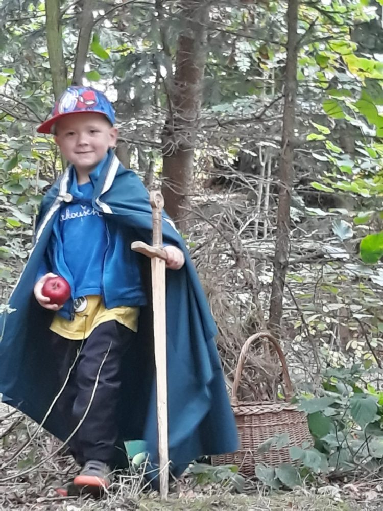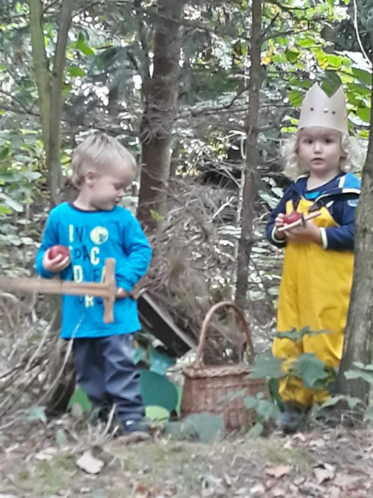 Středa byla ve znamení svatomichaelské stezky odvahy. Již po druhé jsme obnovili pradávnou tradici sv. Michaela, který je pro toto podzimní období symbolem odvážného rytíře bojujícího s drakem a symbolem podzimních plodů, které nás v těchto dnech posílí. Na samotného draka jsme si připravovali od samého rána, kdy jsme si o něm povídali ve vztahu k pohádkám o princeznách a drakovi. Před samotnou cestou k hodnému drakovi si děti vyslechly pohádku O drakovi, který měl rád brambory, a přitom si ho na omalovánce vybarvovaly. Potom se postupně naši malí stateční rytíři vydali cestou lemovanou dračím ohněm k dráčkovi, u kterého si vzali z košíku jablko a vrátili se stejnou cestou zpět. Děti měly radost nejen z toho, že stezku odvahy zvládly projít, ale líbil se jim i dráček a možnost vzít si jablko, kterým se nakonec posilnily. Po obědě jsme si odpočinuli u čtených pohádek, zábavu jsme si užili při hře Škatulata batulata, hýbejte se a někteří si užívali při tvoření s jeřabinami nebo vaření v pískové kuchyni.