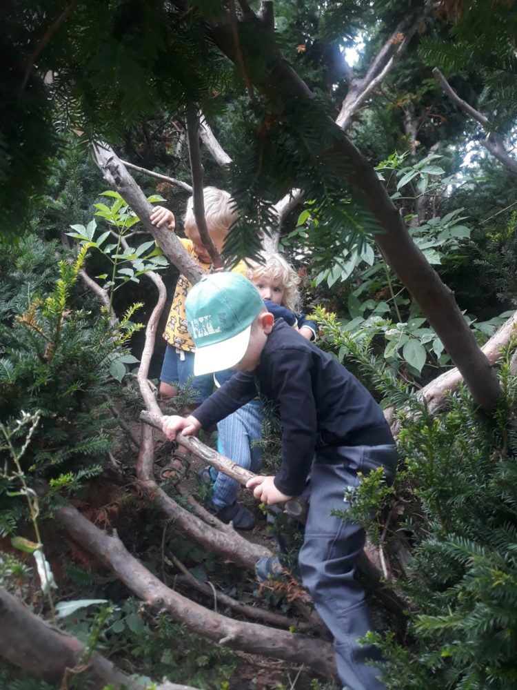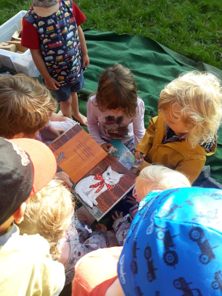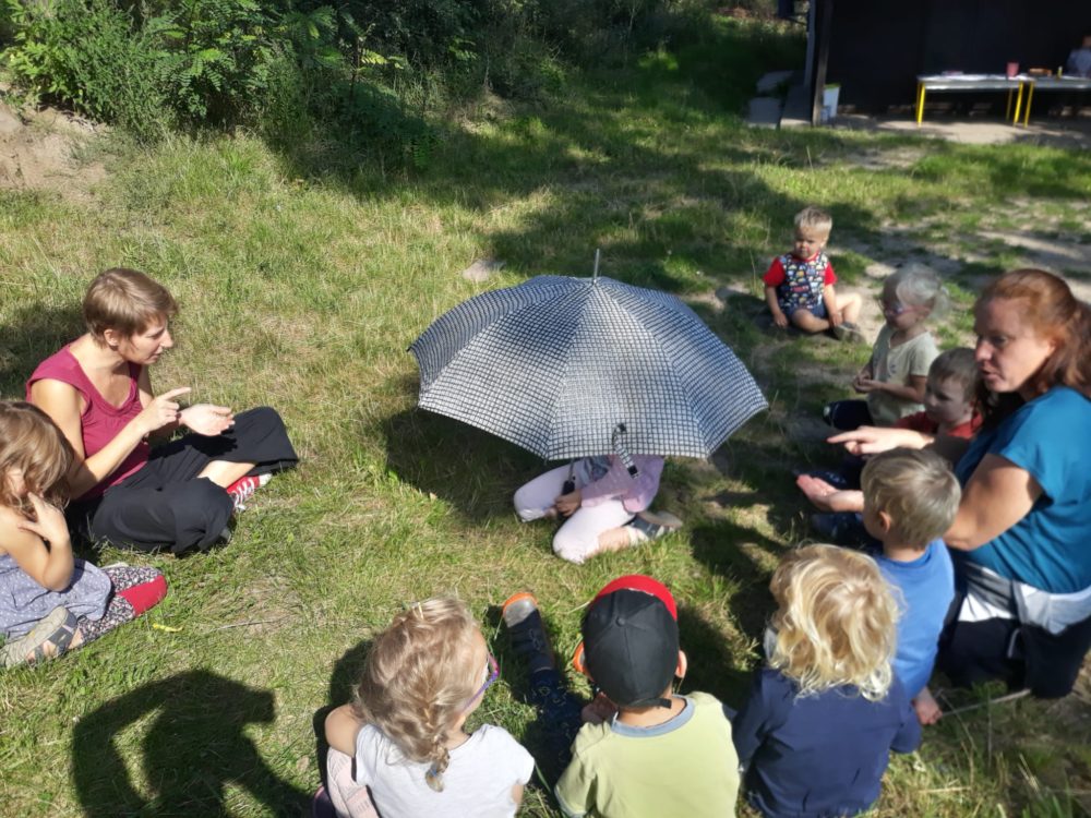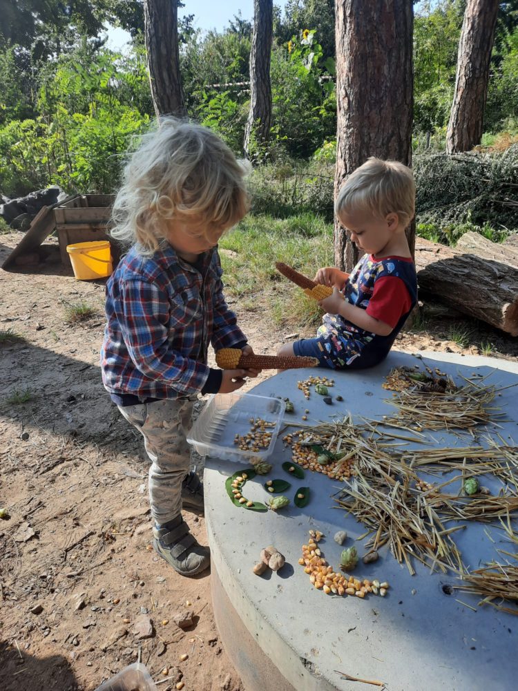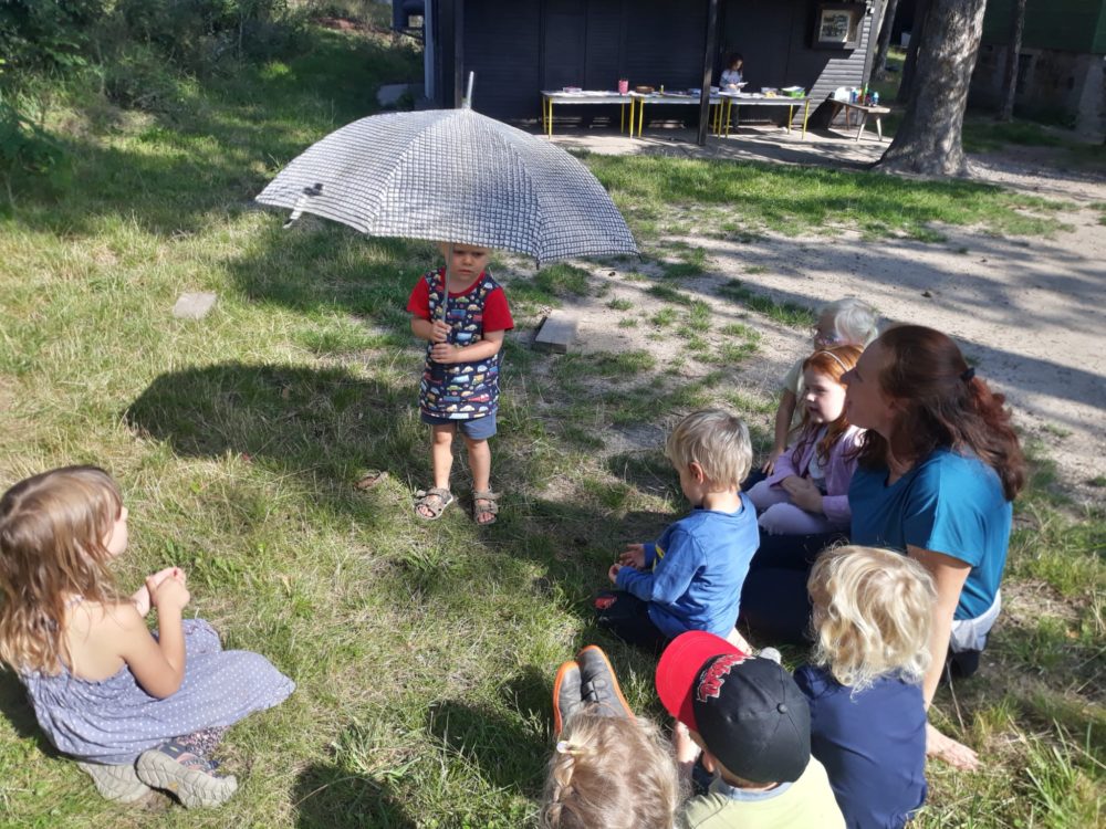 Já a moji kamarádi. To bylo úvodní a hezké téma tohoto týdne. Děti se vzájemně poznávaly při svých volných hrách nebo při společné zábavné hře „deštník“, při které si opakovaly jména kamarádů. O tom, jakou mám barvu očí, vlasů nebo jak to má můj kamarád, nám posloužilo zrcadlo nebo vzájemné pohledy. Děti také tvořily svůj obličej na papíře, kde bylo potřeba doplnit obličejové části. Zábavu si užily i tvoření obličejů nebo dokonce smajlíků z přírodnin. Dopolední část dne jsme zakončili dramatizací tolik oblíbené pohádky Boudo, budko. Nové děti měly nejdříve roli diváka a pak se i zapojovaly. V odpoledních hodinách jsme od tématu odbočili, neb jsme měli kozí návštěvu 😊. Ano, Katka S. k nám do zahrady pozvala sousedku s kozami, které jsme si mohli pohladit, dát jim suché pečivo a pozorovat je při vlastním hledání potravy v celé zahradě. Mééé😊, byl to skvělý zážitek.
