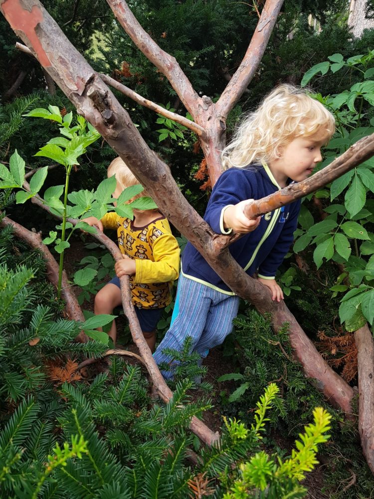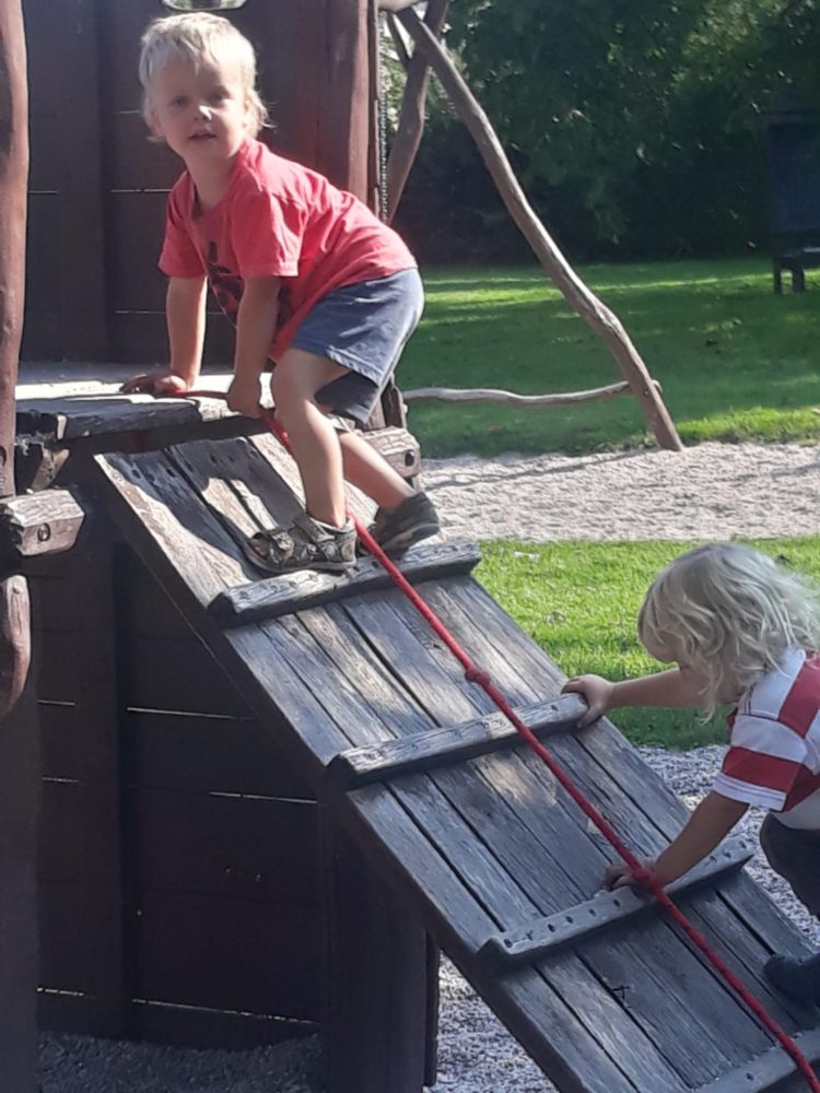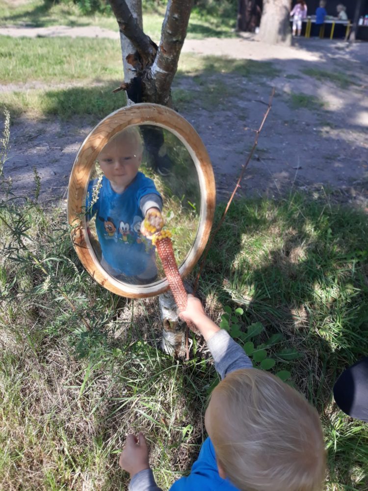 V úterý jsme se poprvé vydali za humna naší školky, do parku, kde jsme se také nasvačili. Potom jsme si užívali při různých pohybových hrách, při lezení do větví stromů, u kreslení klacíky do hlín, skákání panáka nebo zdolávání provazové prolézačky. Také jsme si zahráli ve dvojicích na malé zrcadlo, kdy jeden napodoboval druhého v mimice obličeje. Legrace jsme si také užili při pantomimě, kdy děti předváděly, co je zrovna napadlo. Po poledním klidu, jako vždy stráveného u čtení pohádek, si děti kreslily, hrály si na restauraci nebo si užívaly na dopravním koberci s autíčky a vláčky.