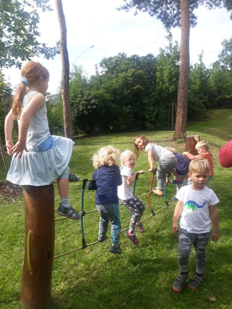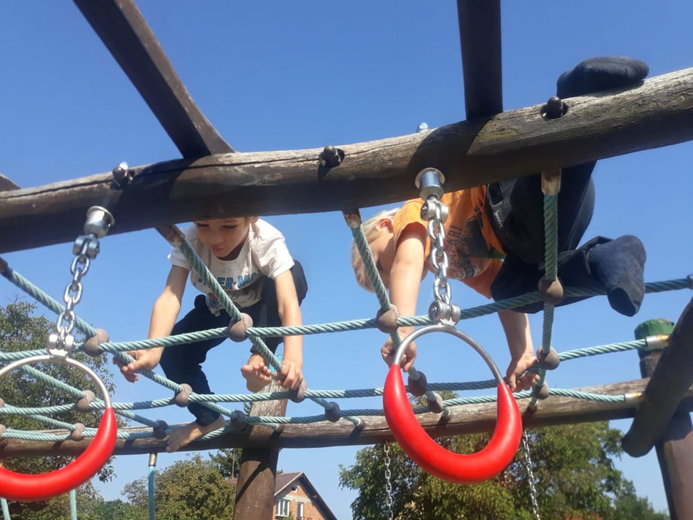 Na závěr týdne jsme se s dětmi vydali na procházku na dětské hřiště do Pařeziny. Cestou jsme trénovali náš vycházkový „autobus“ 😊 a pozorovali jsme co se děje kolem nás. Pozorovali jsme těžké stroje, které dělají novou silnici, viděli jsme kočičku a slyšeli psa štěkat za vrátky, zastavili jsme se u šípku a zjišťovali jsme, jestli už jsou plody zralé. Na hřišti si děti jako obvykle užívaly jízdu na lanovce, zkoušeli své schopnosti na provazových prolézačkách, odvahu na pohyblivém přechodu a bavily se při hraní si v pískovišti.