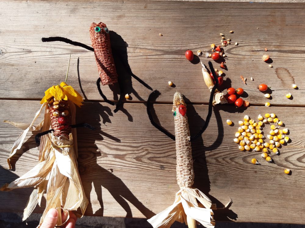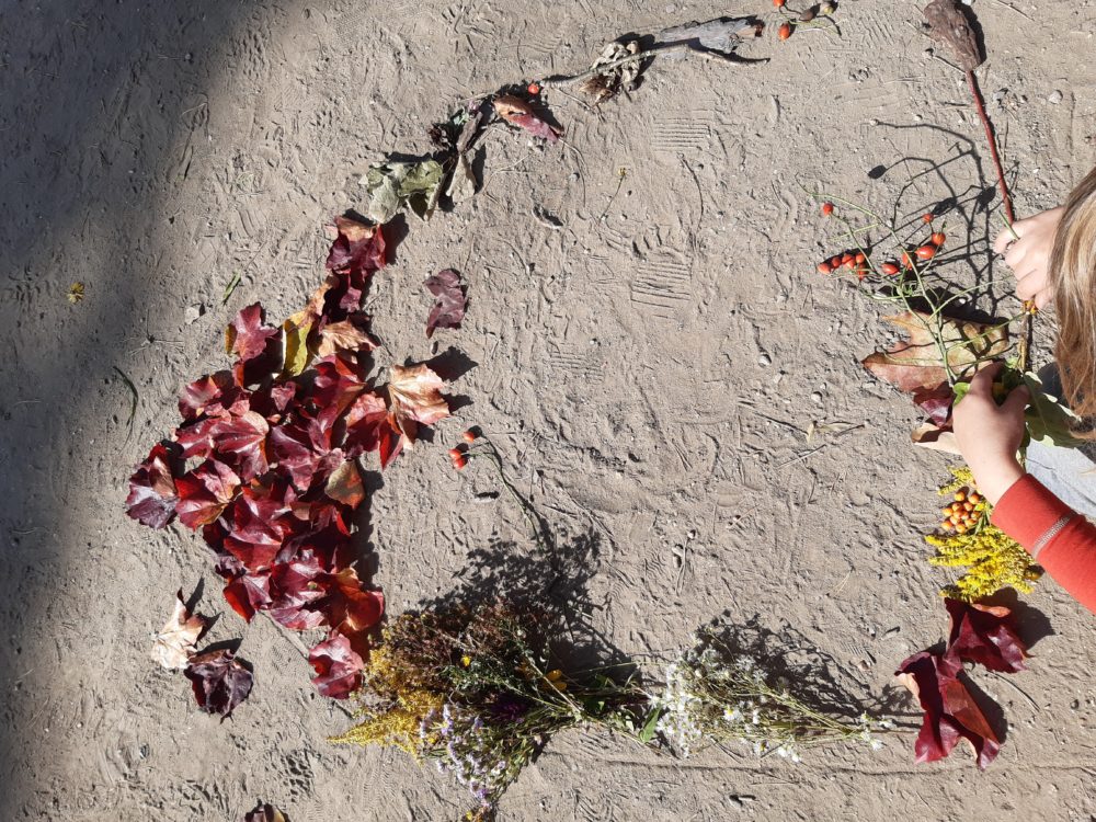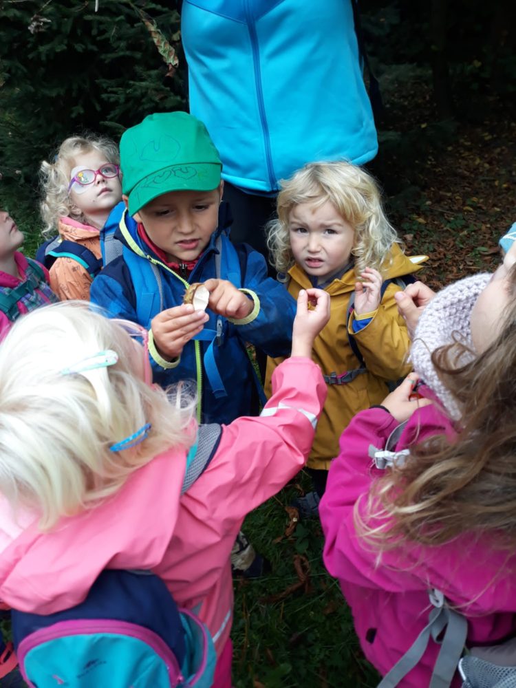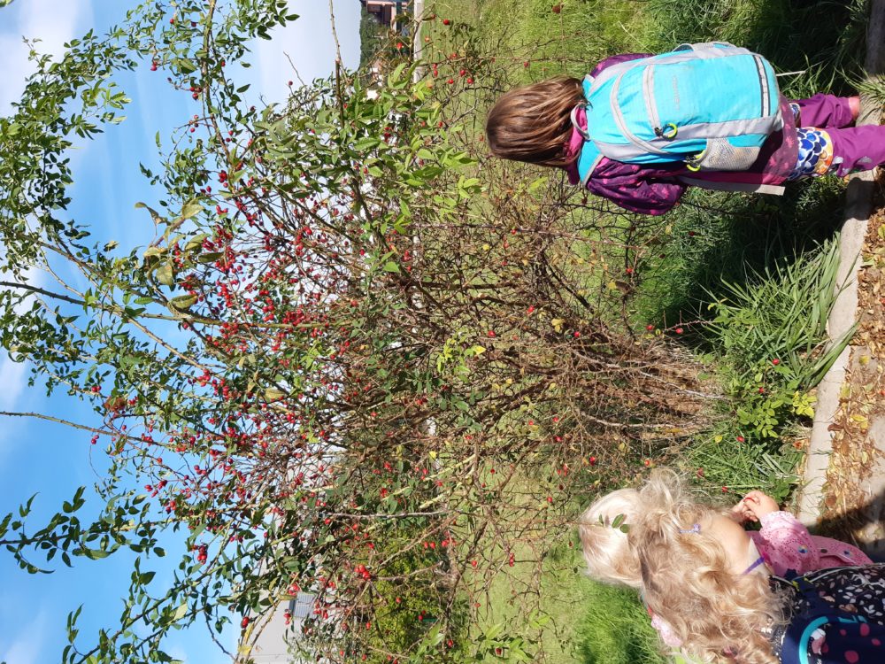 Čtvrtek jsme odstartovali seznámením s podzimním kalendářem a aktivitami, které nám podzim přináší a za které můžeme získat odznak podzimu. Dále jsme si povídali o podzimních plodech a znacích podzimu. Po svačince v parku jsme se vydali hledat projevy podzimu v přírodě kolem nás. Objevili jsme žaludy a v lesíku za státní školkou následně listy mnoha barev, skořápky od ořechů, šišky, jeřabiny i šípky. Natrhali jsme i podzimní květy a s plným košíkem se vrátili do zahrady. Ještě před obědem jsme z nalezeného vytvářeli podzimní domeček. Odpoledne se neslo v duchu výroby podzimníčků z přirodnin.
